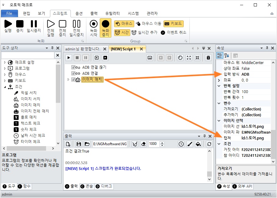 이미지 존재 여부에 따라 참과 거짓 루틴을 이동할수도 있지만, 마우스 동작도 같이 수행할 수 있습니다.