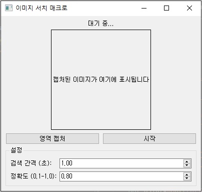 완성된 프로그램을 실행하면 아래와 같은 이미지 서치 매크로 프로그램을 확인할 수 있습니다.