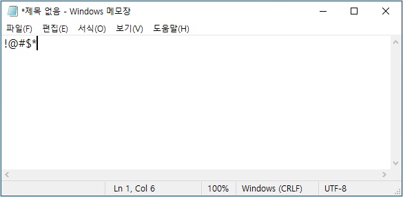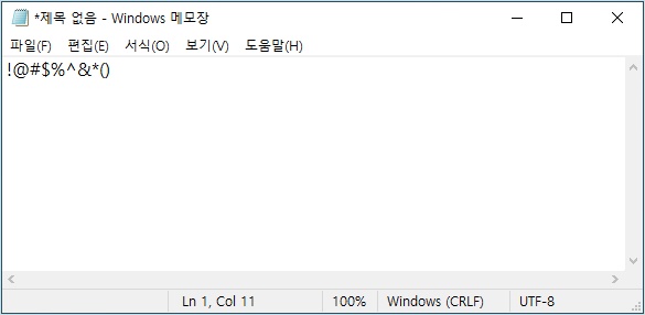 이번에는 정상적으로 모든 특수문자가 입력되었습니다.