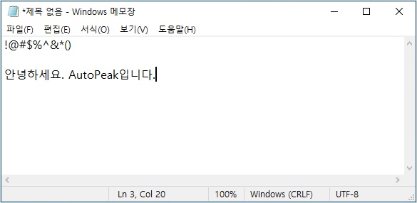 매크로를 실행하면 아래와 같이 메모장에 텍스트가 기록됩니다.