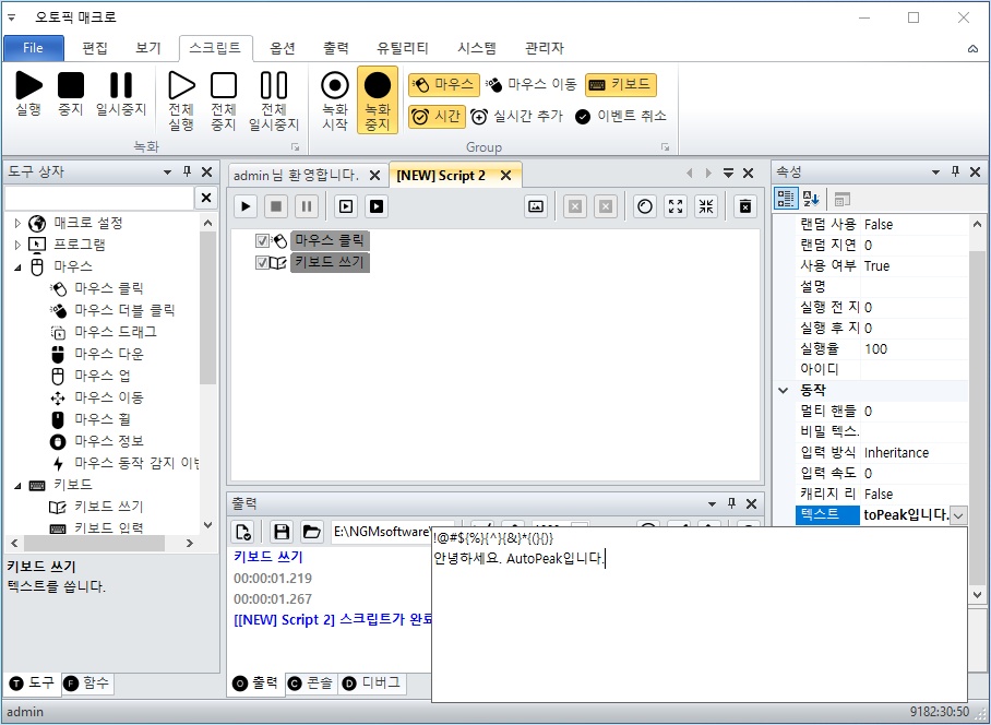 오토픽 매크로에서 키보드 액션을 사용해서 문자 또는 숫자를 입력할 수 있는데요.