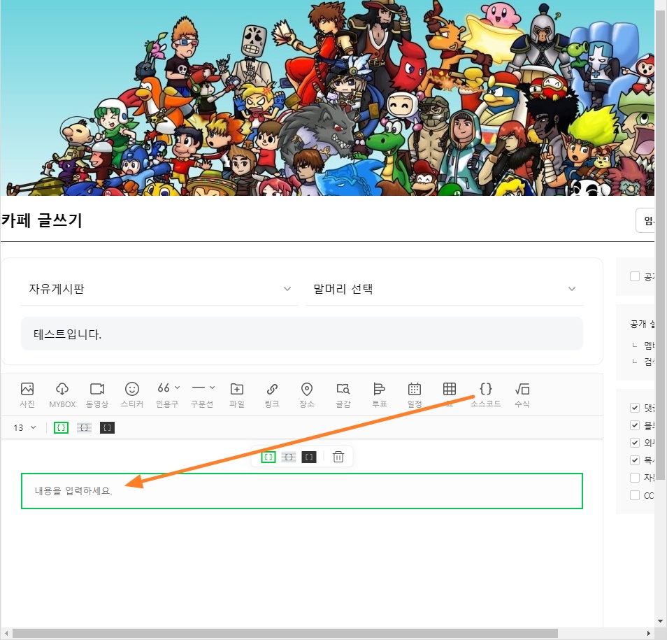 소스코드를 누르면 아래와 같이 내용 입력 부분이 변경됩니다.