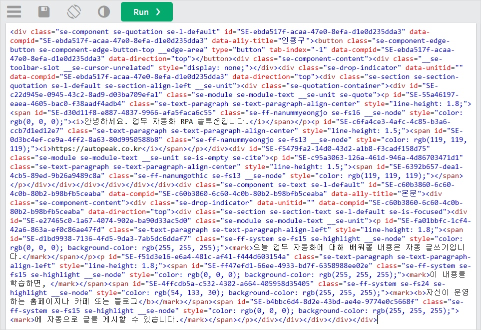 저는 복잡한 방법 말고 간단한 방법으로 처리하려고 합니다. 내용을 HTML로 구성해서 한번에 입력하는 방식을 사용하도록 할건데요.