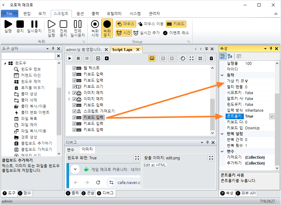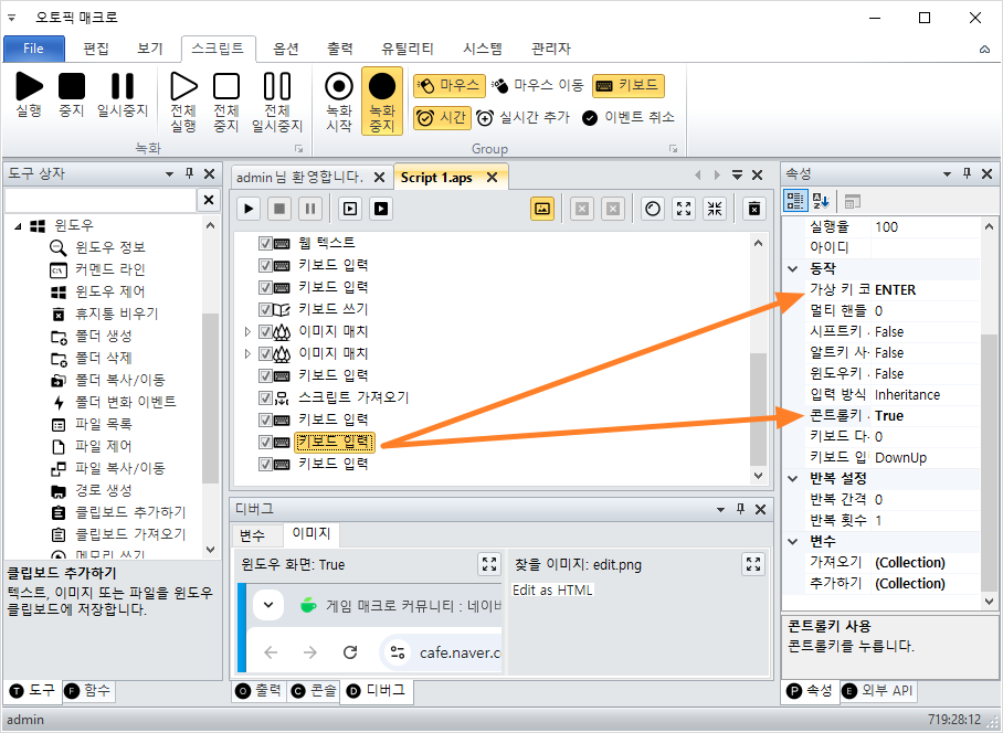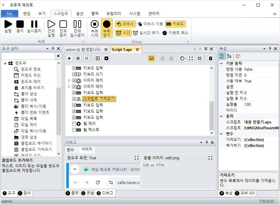 여기서 더 좋은 품질의 매크로를 제작하고 싶다면 핸들 기능을 학습하시고 로직을 개선하면 좋을것 같습니다.