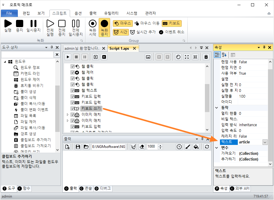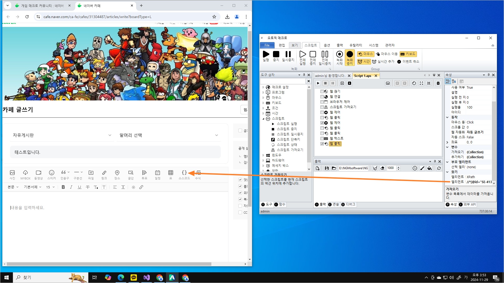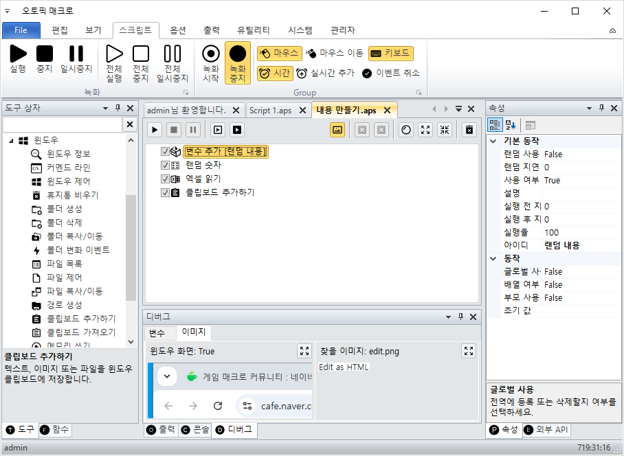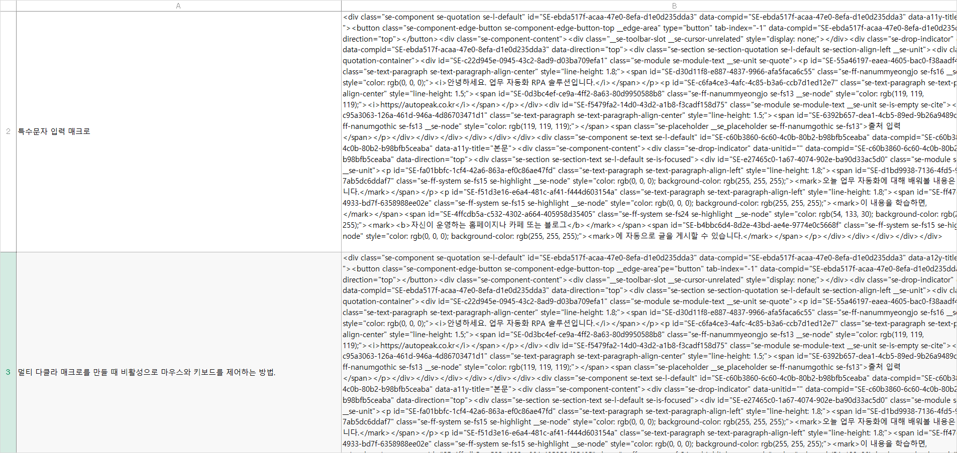 로직은 동일하지만, 엑셀에서 읽어온 값을 랜덤 내용 변수에 저장하고, 이 내용을 윈도우 클립보드에 추가합니다.