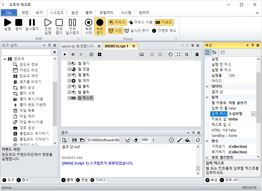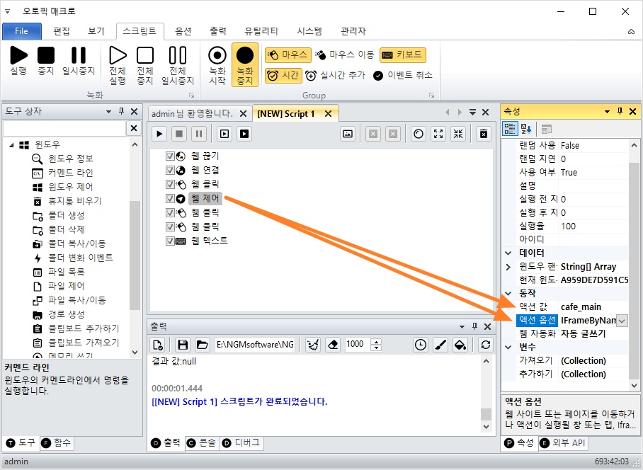 따라서, 해당 아이프레임으로 핸들을 변경하고 웹 클릭과 웹 텍스트 액션이 동작해야 합니다.