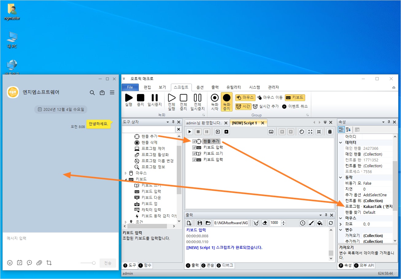 특정 카카오톡방을 선택하고 대화 내용을 추출하는 매크로 프로그램을 만들어 볼께요.