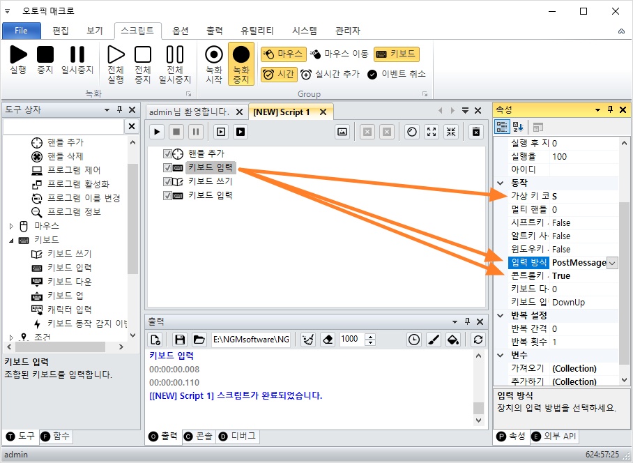 여기서 주의할 점은 입력 방식을 SendMessage로 설정해야 합니다.
