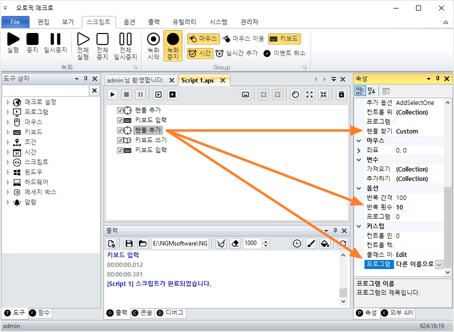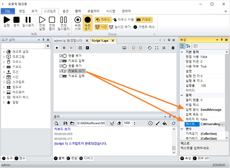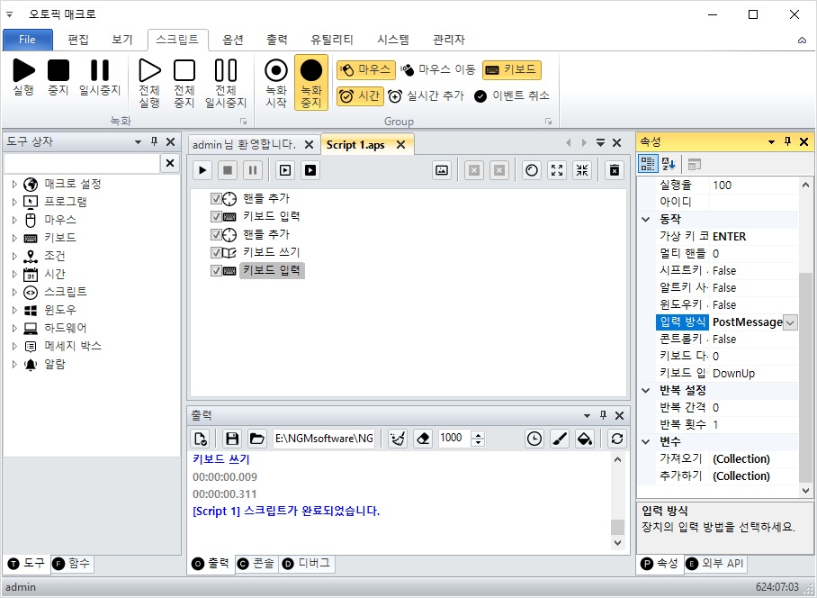 시간 액션들을 활용하면 주기적으로 파일을 저장할 수 있도록 만들수도 있고 스크립트 단축키를 사용하면 수동으로 특정키를 눌러서 저장할수도 있습니다.