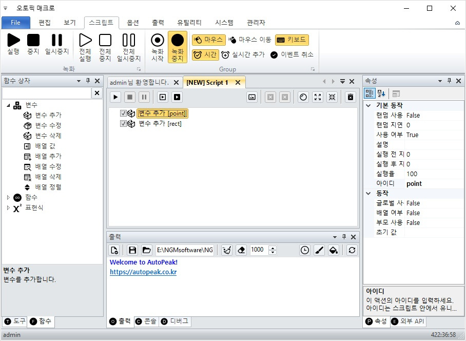 📌 변수 추가는 도구 상단의 변수 관리 메뉴에서 가능합니다.