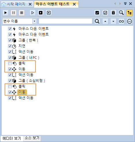 엔지엠 에디터 6.2.1.1 버전부터 마우스·키보드·시간 관련 다양한 이벤트 액션이 추가되었습니다.