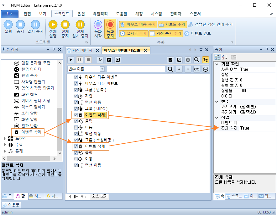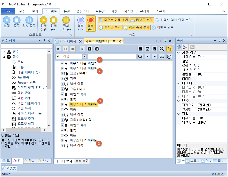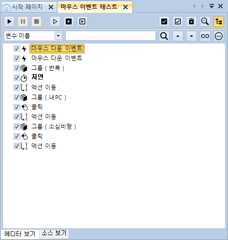 엔지엠 에디터 6.2.1.1 버전부터 마우스·키보드·시간 관련 다양한 이벤트 액션이 추가되었습니다.