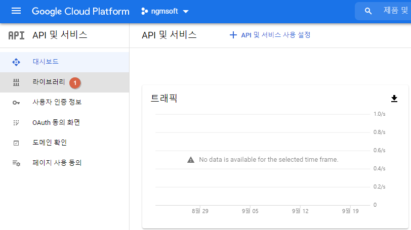 - 구글 계정으로 로그인 후 Google API Console 접속