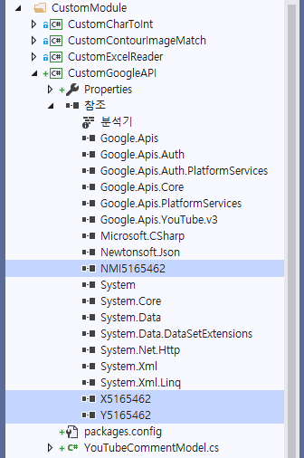 엔지엠 커스텀 모듈 팩 3개를 프로젝트 참조에 추가