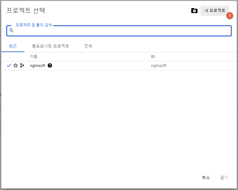 - 구글 API 프로젝트 생성