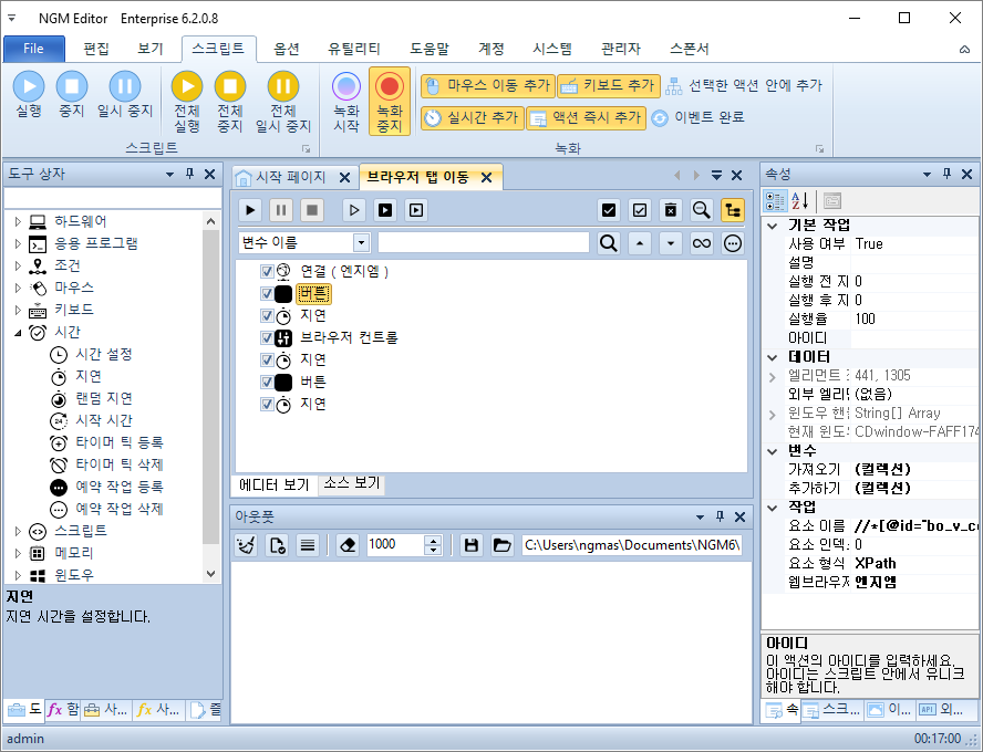 - 새 창이 열리고 페이지가 완전히 로딩될 때까지 [지연] 액션 추가