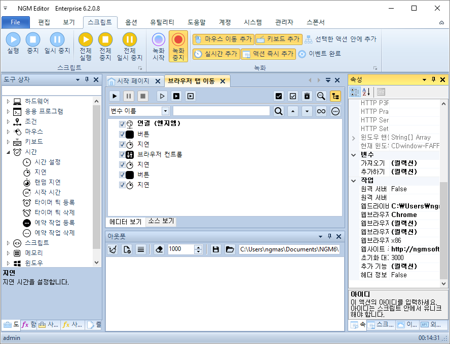테스트를 위해 엔지엠 에디터를 실행하고, 새로운 스크립트를 생성합니다.