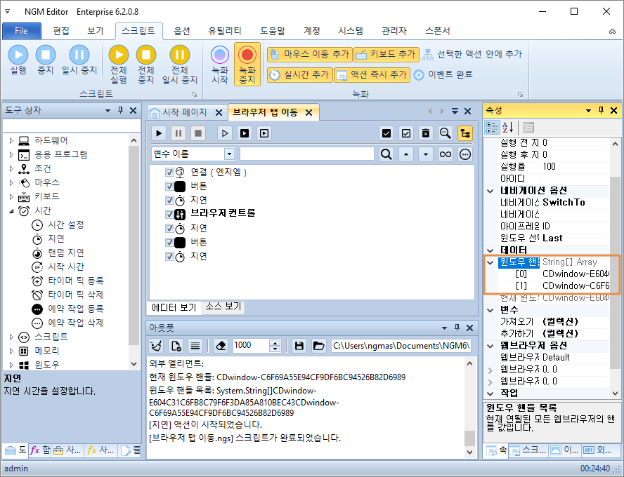 - 연결 액션에서 처음 열리는 창이 메인 핸들로 선택됩니다.