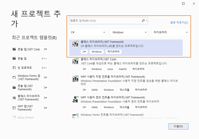 안녕하세요. 엔지엠소프트웨어입니다. 누구나 쉽게 이미지 체크, 이미지 서치, 이미지 매치를 이용한 매크로 프로그램을 만들 수 있도록 최대한 쉽고 간단하게 설명하도록 하겠습니다. 우선, 엔지엠 에디터 엔터프라이즈 라이센스가 있는 상태에서 커스텀 모듈을 개발할 수 있는 환경이 갖춰져 있어야 합니다. Visual Studio Community가 설치되어 있어야 하고, 관리자에게 요청해서 커스텀 모듈 개발 킷을 받으셔야 합니다. 또는 [ 여기 ]에서 커스텀 모듈을 다운로드 받아서 사용하셔도 됩니다. 자~ 이제 커스텀 모듈을 개발하기 위해 Visual Studio Community를 실행하세요. 새 솔루션 또는 프로젝트를 추가하세요. 이 프로젝트는 닷넷 프레임워크의 라이브러리입니다.