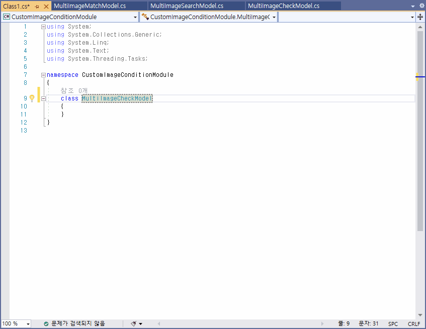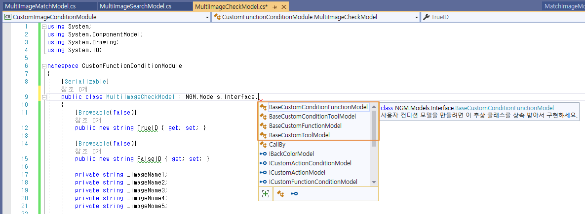이제 본격적으로 코딩을 해봅시다. 코딩은 MultiImageCheckModel.cs 클래스 파일에 작성합니다. 클래스를 더블 클릭하세요. 요즘~ 초딩 코딩 교육이 열풍이죠? 엔지엠 에디터와 비슷한 엔트리나 스크레치를 코딩 교육에 사용합니다. 우리 아이들도~ 엔트리로 코딩 교육을 하고 있습니다. 언젠가는 엔지엠 에디터도 사용하겠죠? 이처럼 블록을 쌓아서 코딩하는 방식이 가장 직관적이고 쉽다는걸 알 수 있습니다. 하지만, 커스텀 모듈은 개발자가 아니라면 혼자서 개발하기가 쉽지 않죠. 그래서~ Step by Step으로 작성된 메뉴얼을 보고, 직접 학습해야 합니다.
