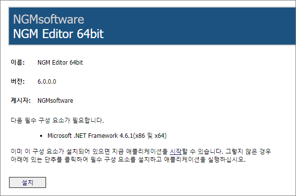 - 반드시 .NET Framework 4.6.1을 먼저 설치해야 합니다.