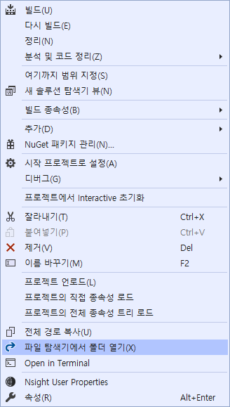 컴파일이 정상적으로 완료 되었으면, CustomGoogleAPI 프로젝트에서 우클릭 후 "파일 탐색기에서 폴더 열기"를 선택하세요.