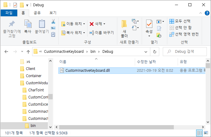 bin/Debug 폴더로 이동하세요. 만약, Release 모드로 컴파일했다면 bin/Release 폴더로 이동해야 합니다. 가급적이면 배포시에는 Release로 컴파일하세요. 아래 그림과 같이 CustomGoogleAPI.dll이 있을겁니다. 이 라이브러리를 복사한 후 바탕화면에 붙여넣기하세요.