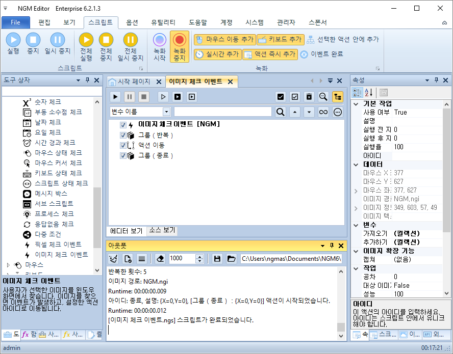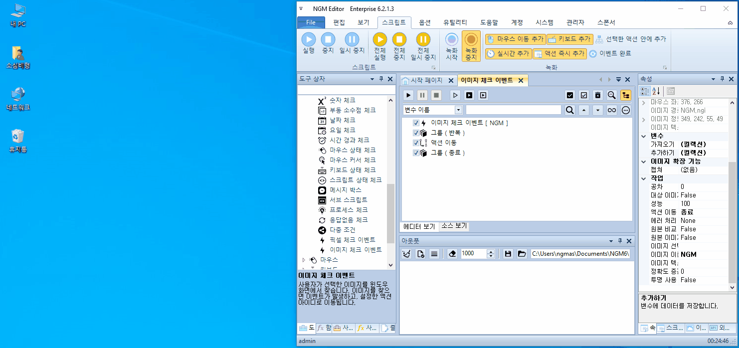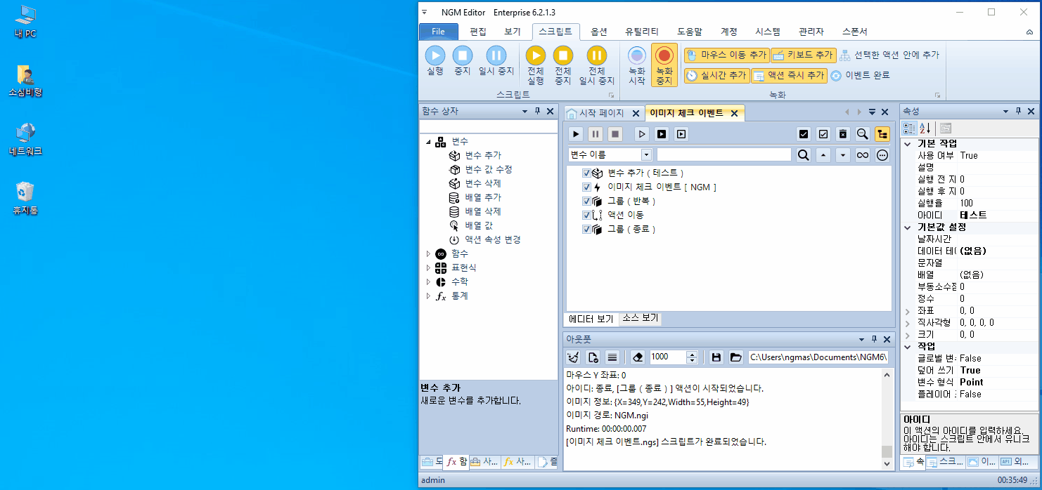 엔지엠 RPA 매크로에는 스크립트 액션과 상호작용할 수 있는 이벤트 기능이 포함되어 있습니다.
