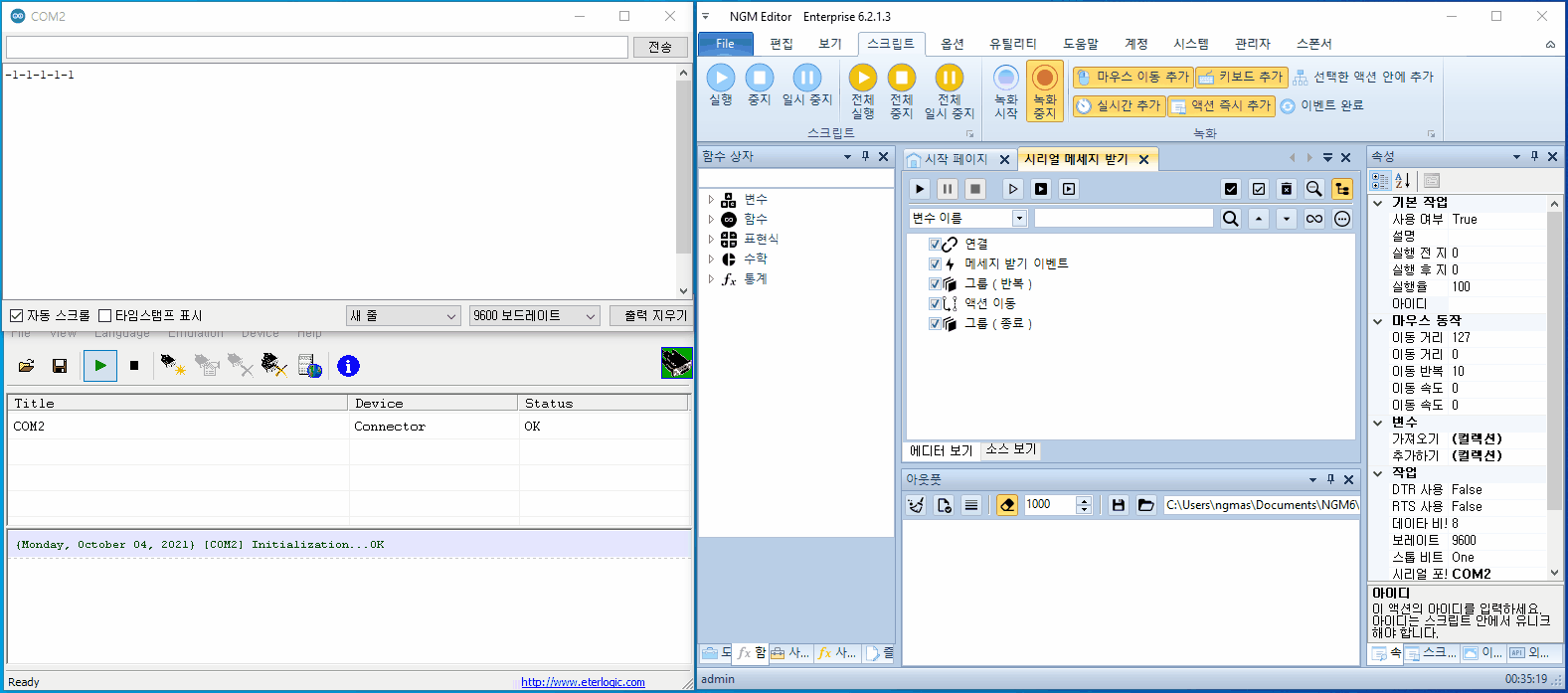 엔지엠 RPA 매크로에는 외부 API를 통한 시리얼 통신 기능이 있습니다.