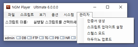 플레이어를 실행한 후 메뉴에서 관리자를 선택하세요.