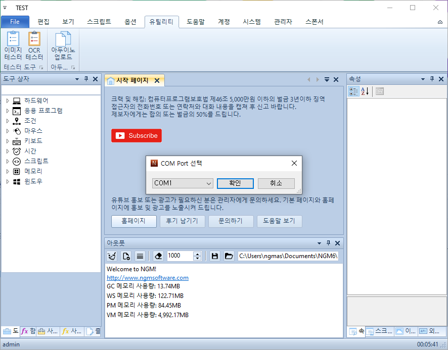 더 저렴한 제품들도 있으니 오픈 쇼핑에서 비교해보시고, 저렴한걸로 구매하세요. 참고로, 컴퓨터와 연결할 케이블이 포함된걸로 구매하셔야 합니다. 제품은 아두이노 레오나르도여야 합니다. 우노나 다른 제품은 NGM과 호환되지 않으니 주의 해주세요. 아두이노가 배송이 왔다면 컴퓨터의 USB에 연결 해줍니다. 그리고, 에디터를 실행한 후 메뉴에서 유틸리티를 선택하세요.