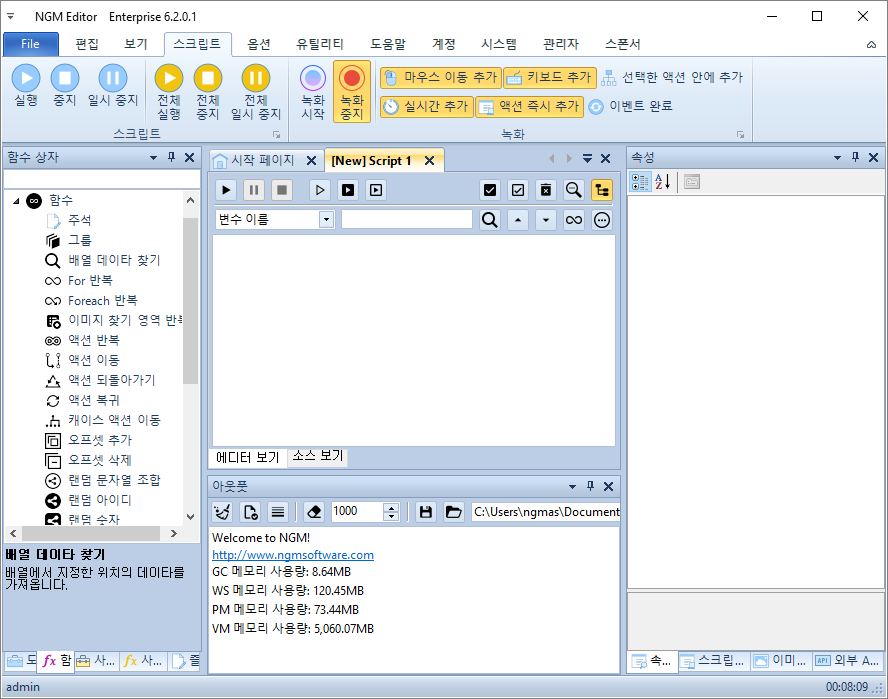 - 엔지엠 에디터 실행 → 새로운 스크립트 추가