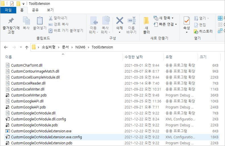 커스텀 모듈을 전체 빌드한 후 생성된 모든 파일을 복사하고, 내문서 > NGM6 > ToolExtension 폴더에 붙여넣기 하세요.