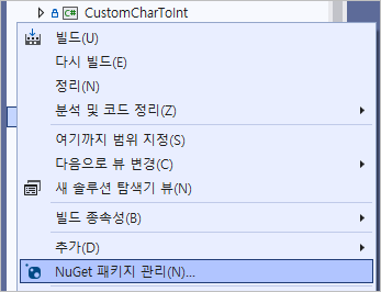 구글 API를 사용하기 위해 구글 패키지를 설치해줍시다. 아래 그림과 같이 프로젝트에서 우클릭 후 NuGet 패키지 관리를 클릭하세요.
