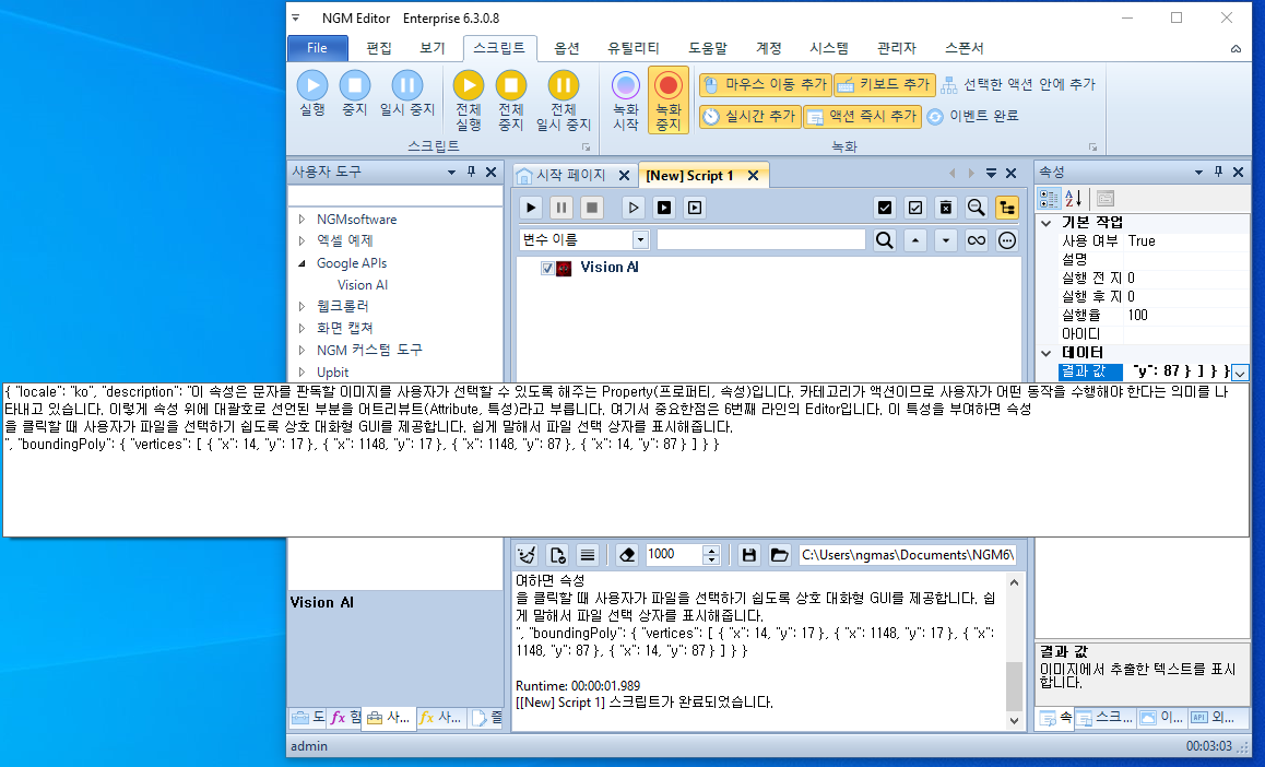 안녕하세요. 엔지엠소프트웨어입니다. 다중 언어(한글과 영어 및 숫자) 문자 인식을 커스텀 모듈로 만드는 방법에 대해 글을 작성중입니다. 왜 이 글을 작성하는지는 [ 1부 ]를 참고하시면 됩니다. 1부 내용을 안보셨으면 이 내용을 학습할 수 없으니 꼭~ 읽어보고 오시기 바랍니다^^ 만약~ 코딩이 귀찮다면 이 글의 첨부 파일과 [ 커스텀 모듈 ]을 다운로드 후 구글 API만 받아서 폴더에 복사해도 됩니다. 커스텀 모듈을 구매하시면 기본적인 셋팅은 원격으로 도와드립니다!
