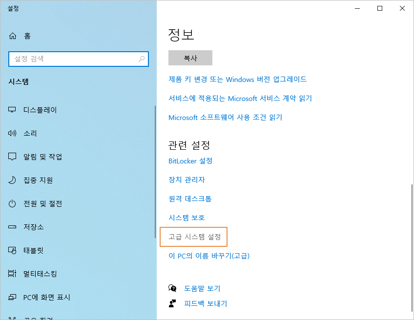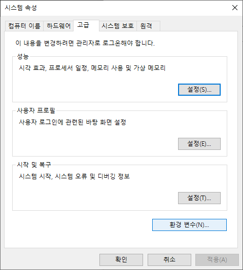 시스템 변수에 정상적으로 등록되었는지 확인하기 위해 내 컴퓨터의 속성을 클릭하세요. 아래 그림과 같이 "고급 시스템 설정"을 클릭해줍니다.