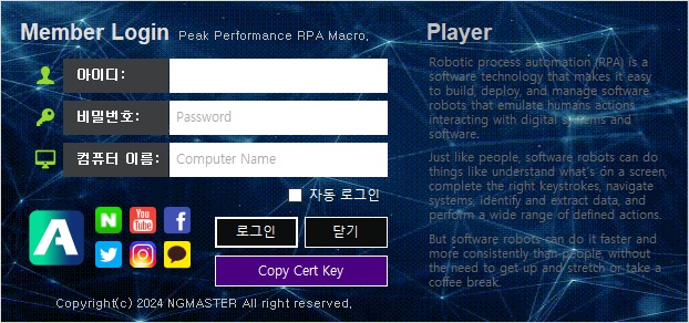 플레이어는 아래와 같이 로그인 폼이 약간 다르게 표시됩니다.