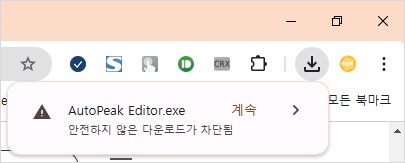 만약, 아래 그림과 같이 안전하지 않은 파일 다운로드가 차단됨 경고창이 표시되면 계속을 클릭하세요.