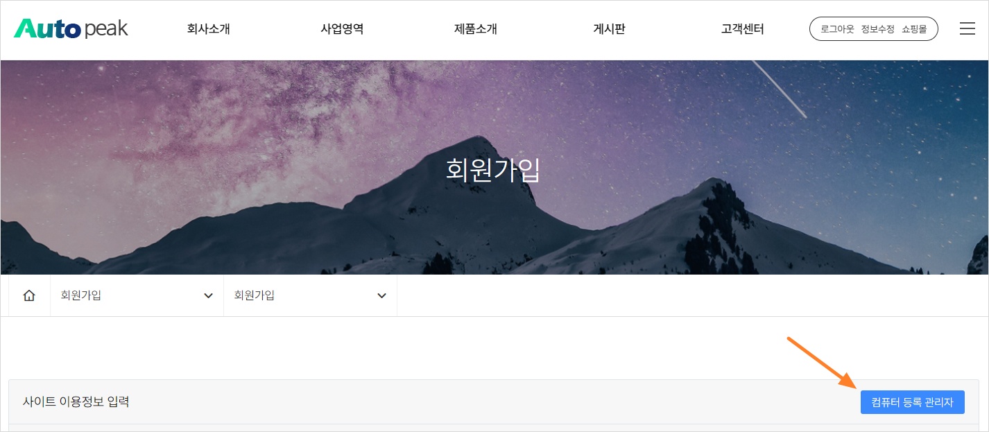 내 정보 페이지에서 아래 그림과 같이 우측의 컴퓨터 등록 관리 버튼을 클릭하세요.