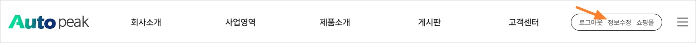 홈페이지에 로그인하고, 우측 상단에 정보수정을 클릭하세요.