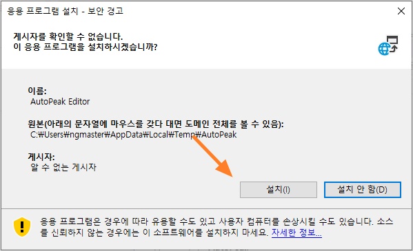 다운로드 받은 AutoPeak Editor.exe 파일을 더블클릭해서 실행하세요.