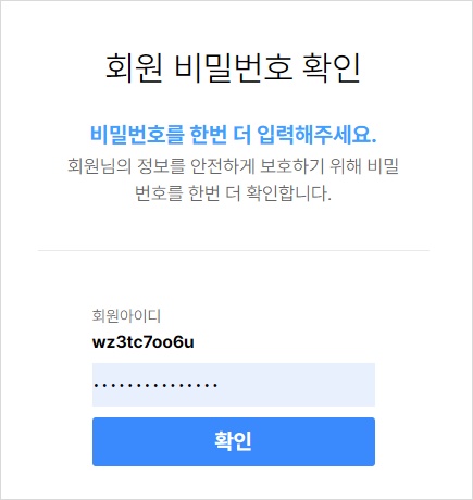 보안을 위해 비밀번호를 한번 더 입력해야 합니다.
