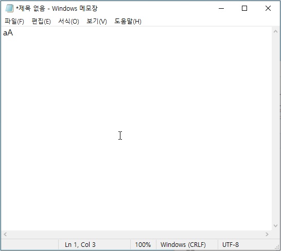 매크로를 실행하고, 메모장을 볼까요? 대문자 A가 정상적으로 입력되었습니다.