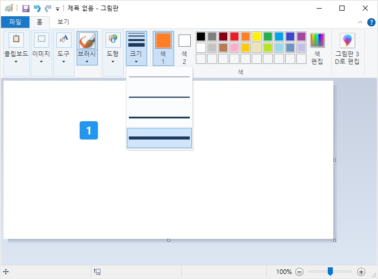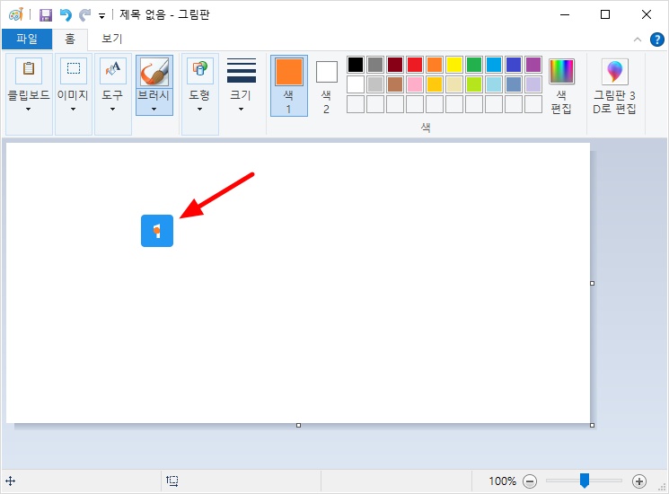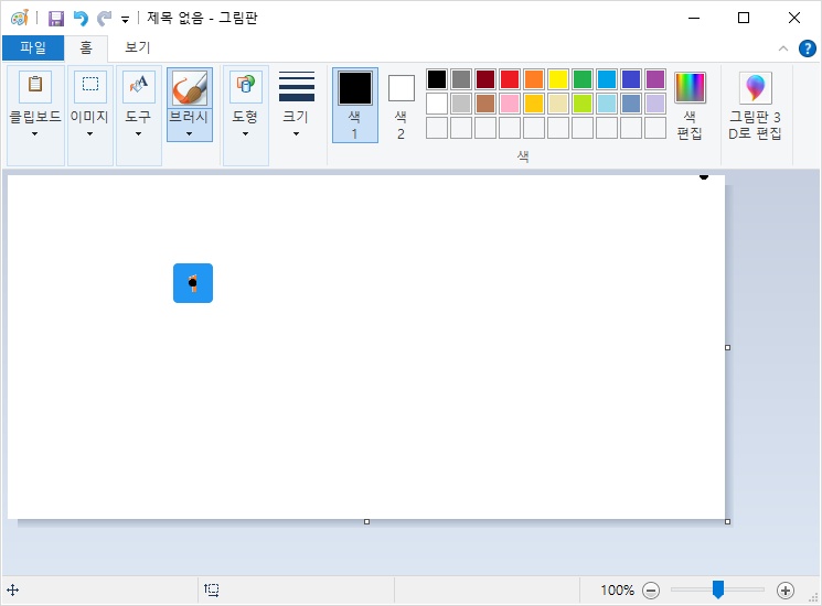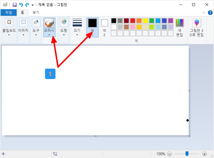 시각적으로 확인하기 위해 그림판에 브러시를 선택하고, 색상은 검은색으로 변경하세요.