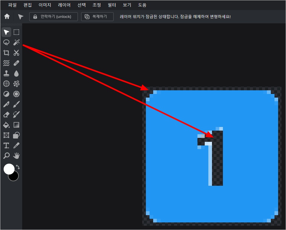 여기서 True가 되려면 오랜지색 숫자 1 부분을 비교 픽셀에서 제외시켜야 합니다. 그러기 위해서 투명하게 만든건데요.