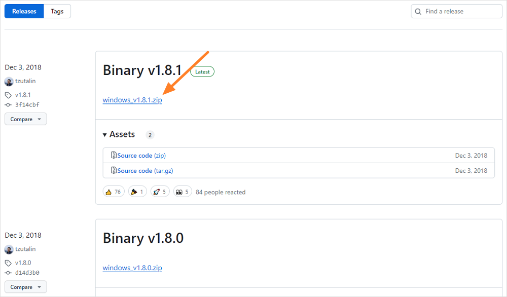아래 그림과 같이 windows_v1.8.1.zip 파일을 다운로드 받으세요. 프로그램명 뒤에 버전은 다를 수 있습니다.
