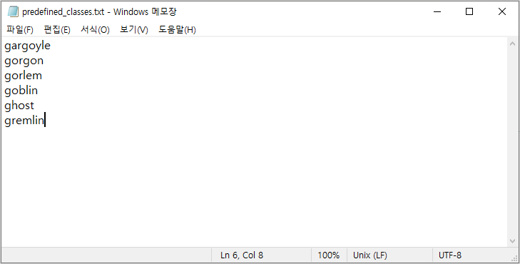이 파일을 열어보면 라벨링에 사용된 몬스터 이름들이 들어 있습니다.