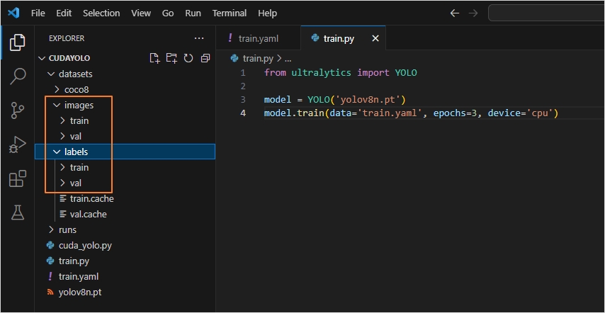 - model.train(data='train.yaml', epochs=3, device='cpu')