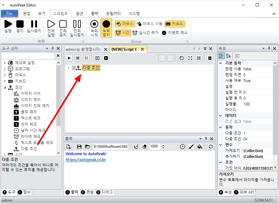 아직 배워야 할 내용들이 많이 남아있는데요. 가단한 매크로는 마우스와 키보드 그리고, 조건으로 모두 만들 수 있습니다.