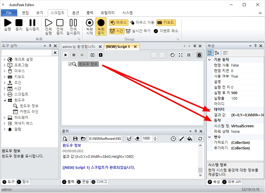 오늘은 크게 쓸일은 없지만, 또 없으면 아쉬운 기능인 윈도우 정보 액션에 대해 알아보도록 하겠습니다.